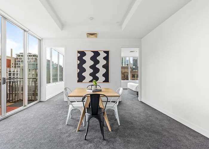 The Mark On Collins boasts views of the city and is located approximately a 25-minute walk from Fitzroy Gardens.